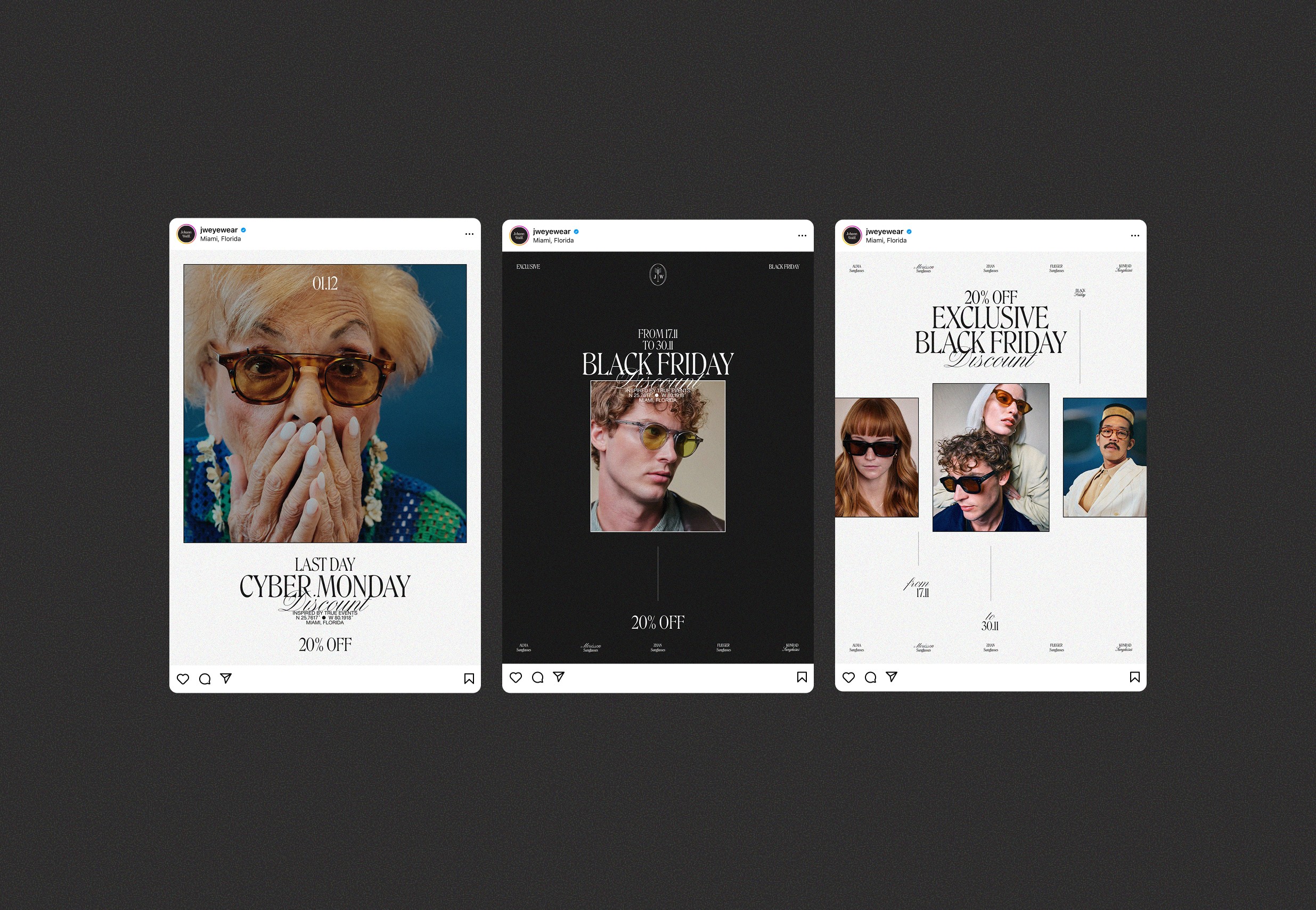 The campaign was brought to life through a lifestyle-focused photoshoot, presenting Johann Wolff eyewear in a modern context. Subtle styling details and refined visual elements enhanced the frames without overpowering them, allowing the product to remain the hero.